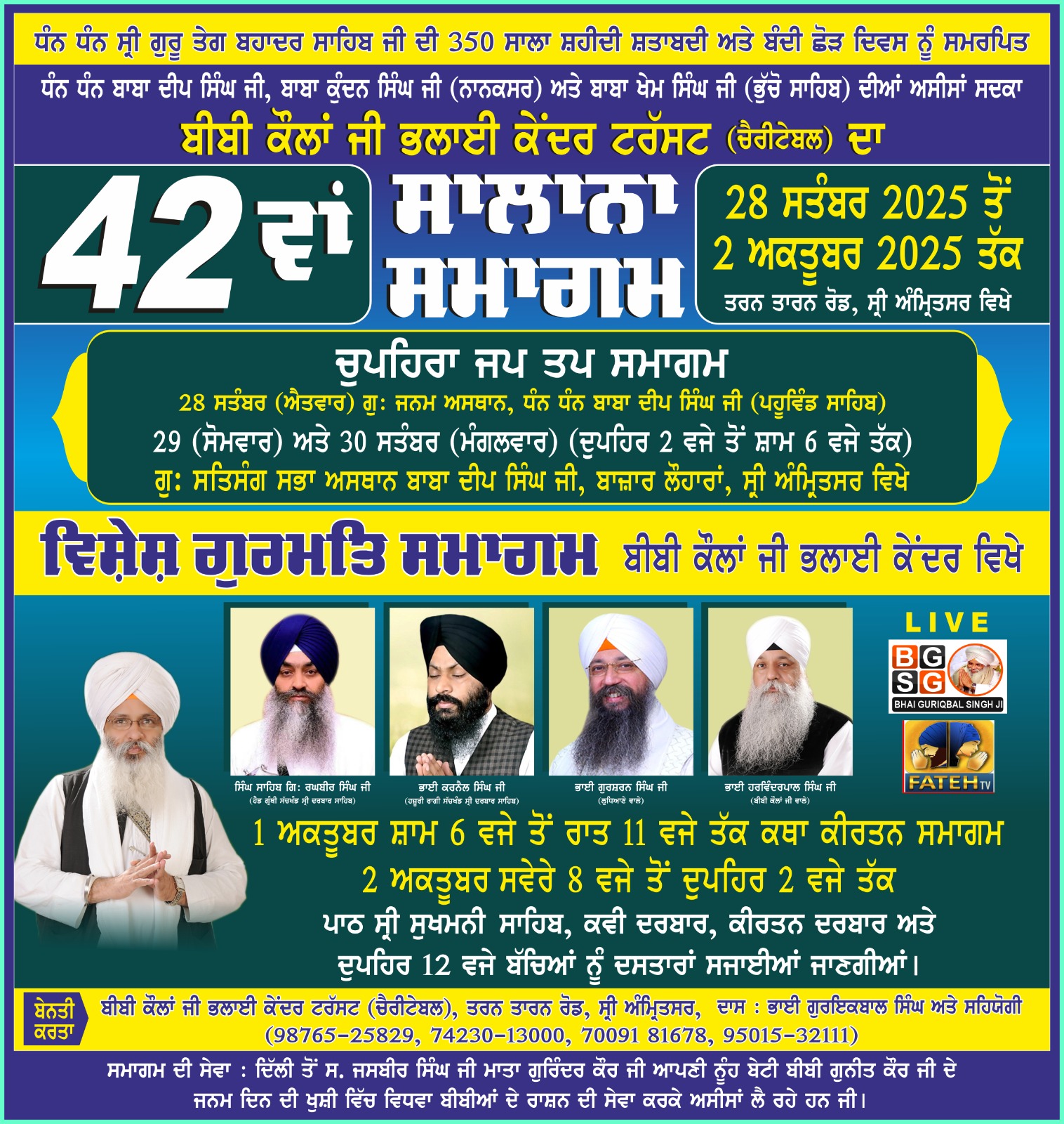 ਸੰਚਾਲਕ :ਭਾਈ ਪ੍ਰਿਤਪਾਲ ਸਿੰਘ ਜੀ  (ਮੋਬ :098765-25811)